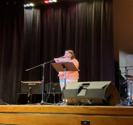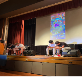 Last but not least, the talent show ended with a student favorite. Mr. Finch, Kamren Meloy, Emmet Brown, and Oliver Chalmers came together and made a band, Mr. Finch was the lead singer to the song “Highway to Hell” by AC/DC. Kamren and Emmet played the electric guitar, Oliver was on the bass guitar, and Ashur on the drums. They had the crowd hyped and did an awesome job.